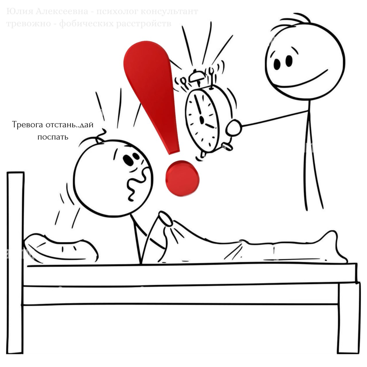 Рассмотрим бессоницу как симптом тревожного расстройства. Бессонница как следствие тревожного расстройства, которая ухудшает прогноз заболевания.Жил был Иван, у которого начался какой - то контекст в личной жизни, он начал будоражить его тревожное состояние, а тревожное состояние стало будоражить циркадные ритмы Ивана. Иван стал плохо засыпать и не понимает, что с ним происходит, изо дня в день сон то чуть лучше, то хуже и будильник уже не так уж и нужен, так как будильник это он сам.