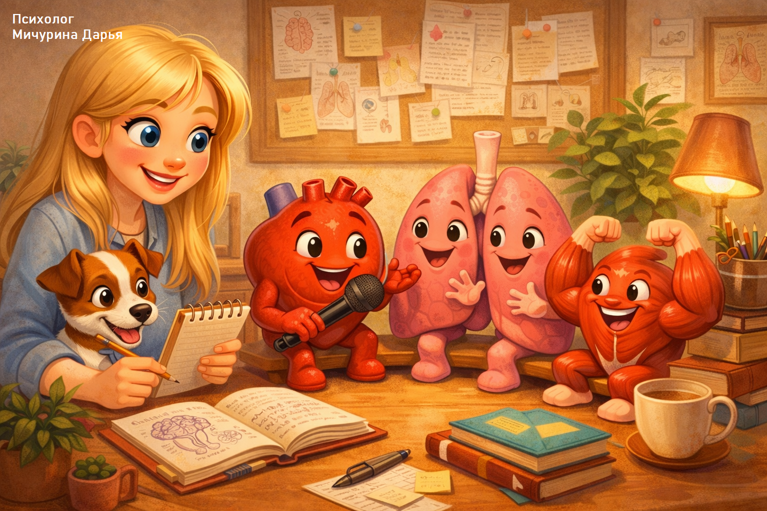 🎈Лёгкие: «Я тоже подстраиваюсь. Да, дыхание ускорилось, но это чтобы насытить кровь кислородом. Пусть головной офис (мозг) думает, что опасность реальна, и мне нужно больше кислорода для «борьбы или побега». Но мы то с тобой знаем, что на самом деле опасности нет, и мы спокойно выдерживаем эту работу. Смотри, через несколько минут дыхание вернётся в обычный ритм, а ты даже этого не заметишь, потому что у нас итак всё под контролем, без твоих проверок!»