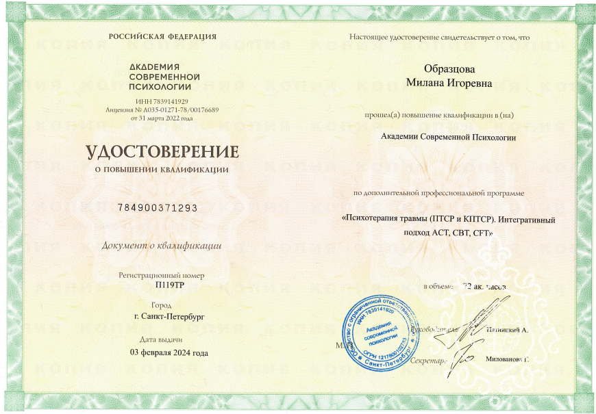 РПП (анорексия, булимия, компульсивное переедание), ОКР, ГТР, депрессия, тревога, астения, ипохондрия, агорафобия, выгорание, страхи, дисморфофобия, панические атаки и др