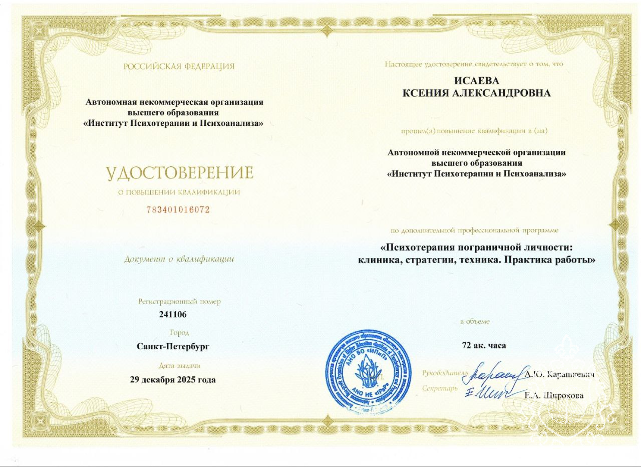 Экстренное кризисное консультирование. Тревожные расстройства, панические атаки, депрессия, невроз, "ВСД". Расстройства личности. Групповая терапия, работа в паре с ко-терапевтом.