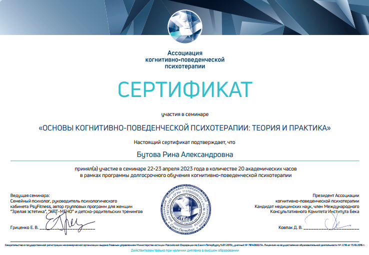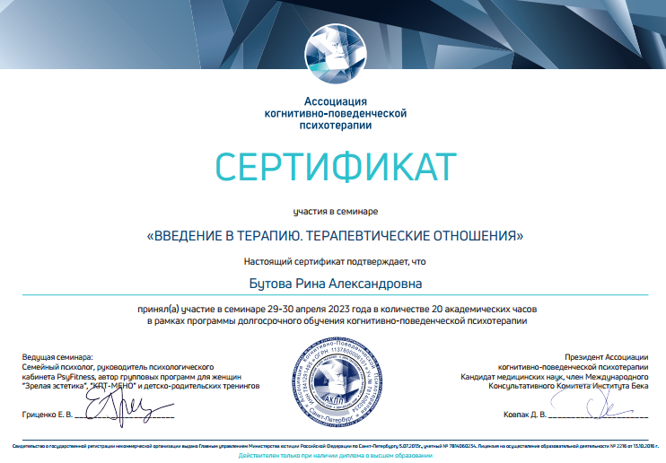 Я работаю в когнитивно-поведенческом (КПТ), АСТ, ЛОРПТ и РЭПТ психотерапевтических подходах.