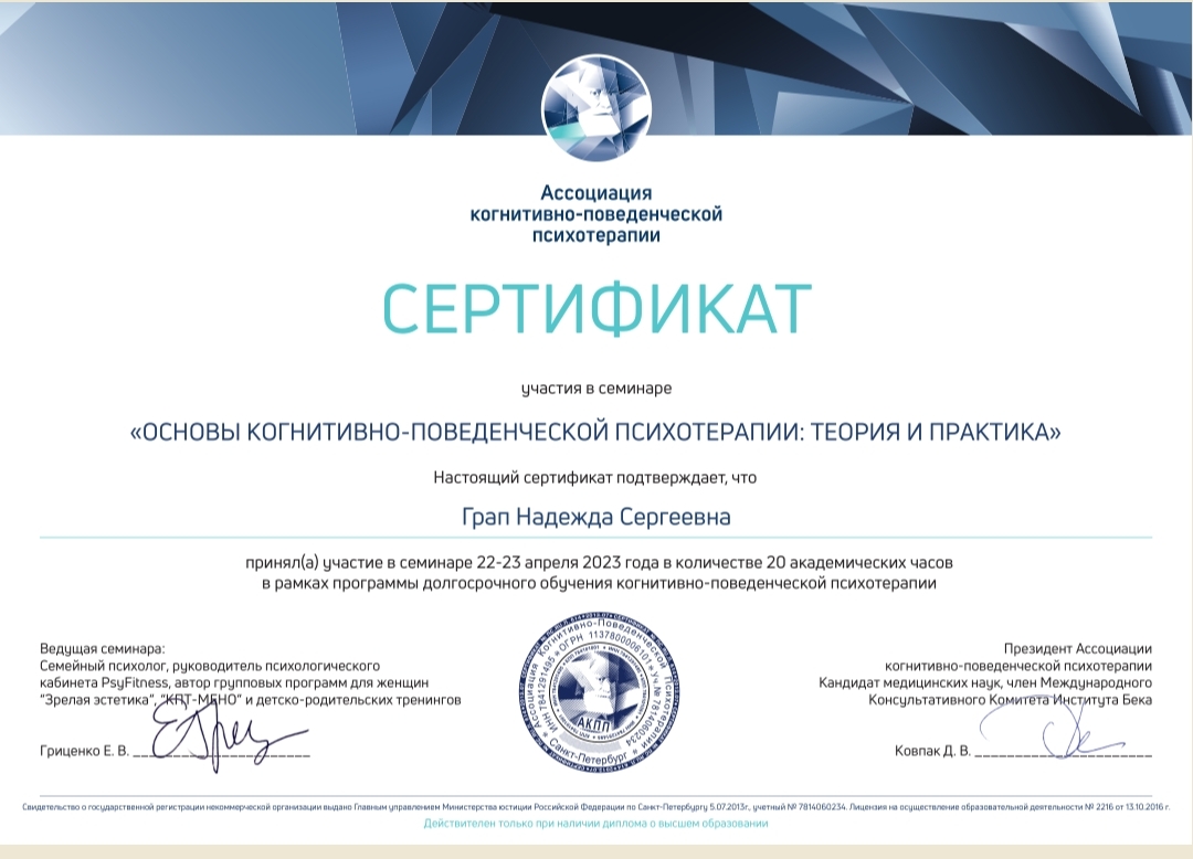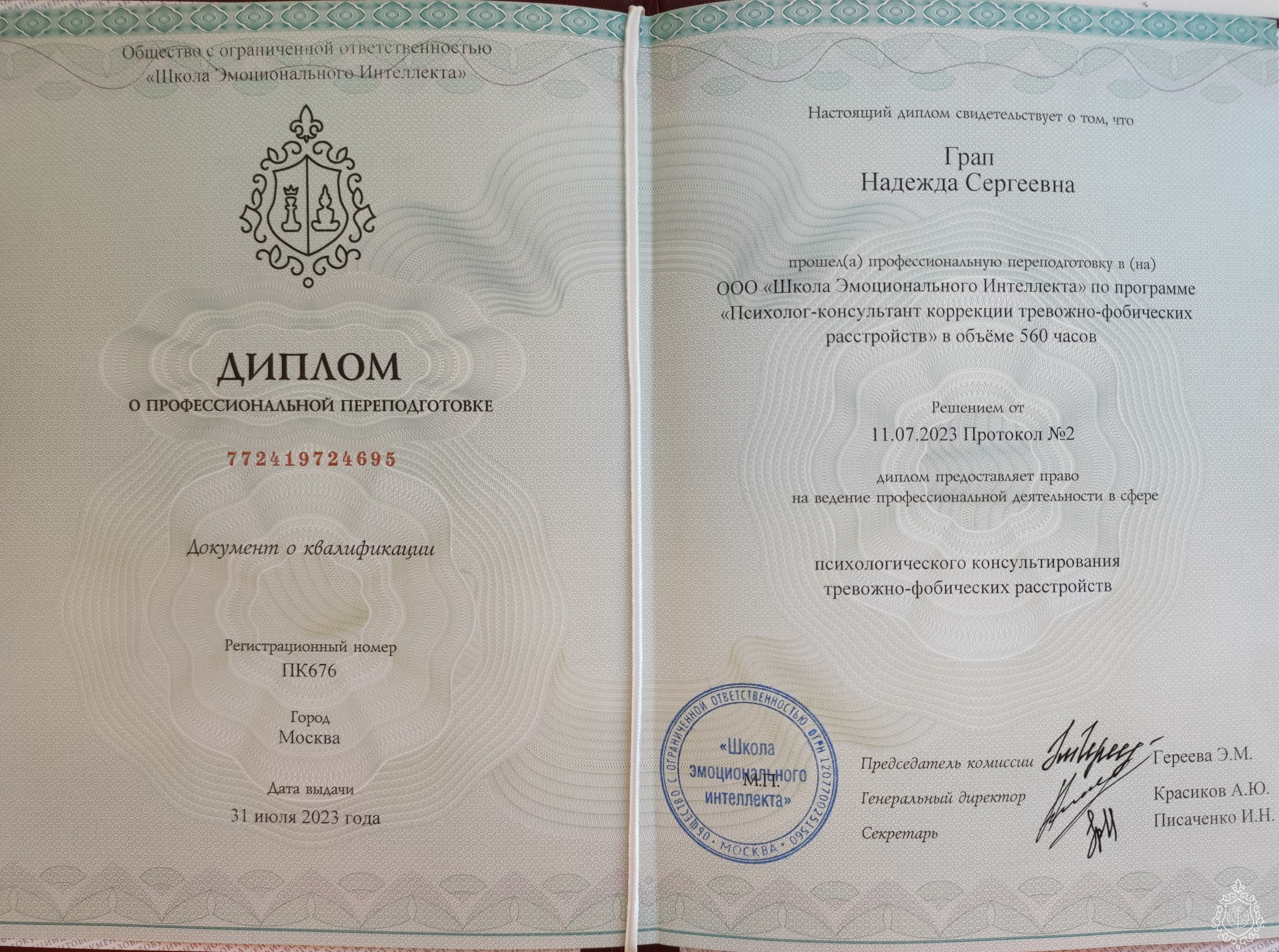 Меня зовут Надежда Грап, я специалист по коррекции тревожно-фобических расстройств.