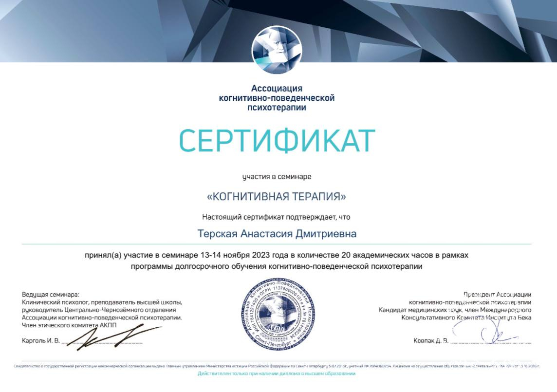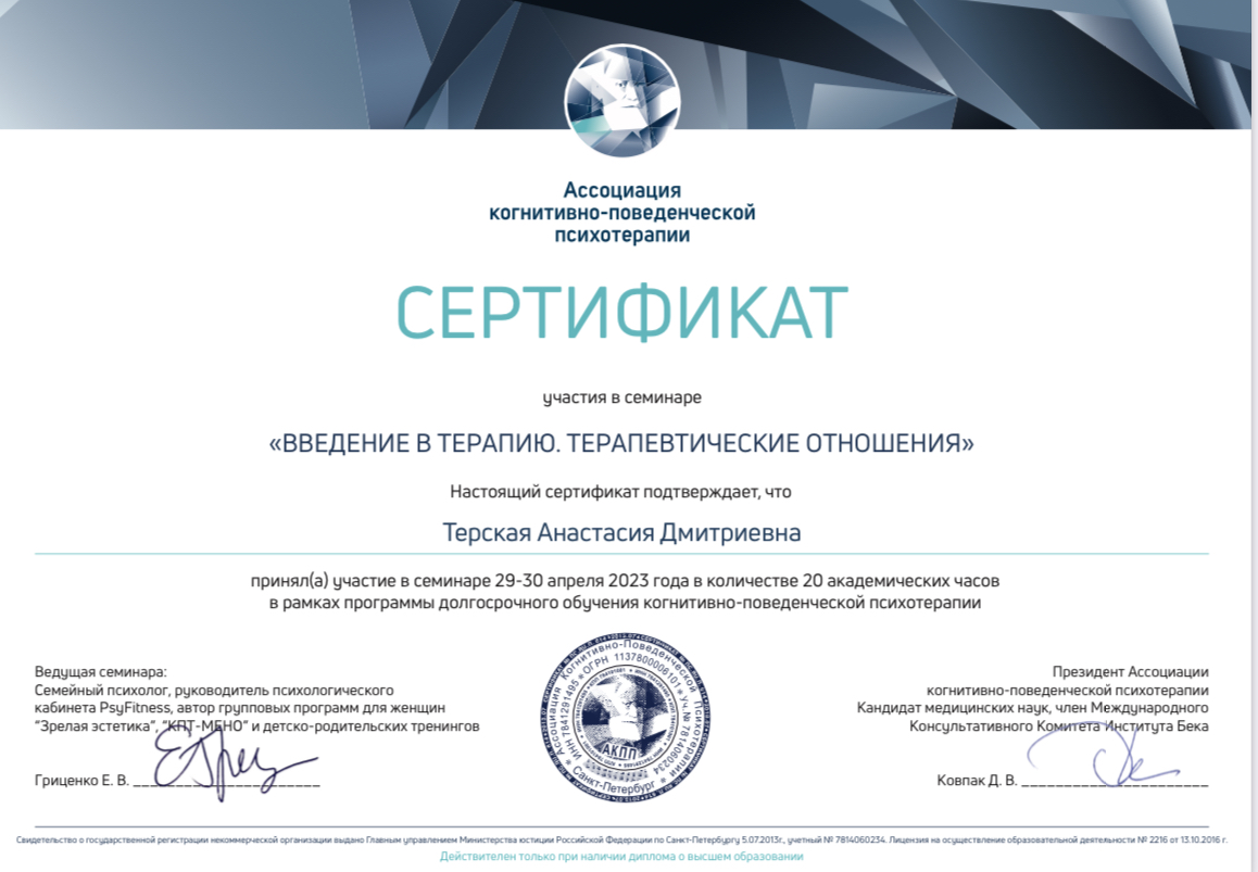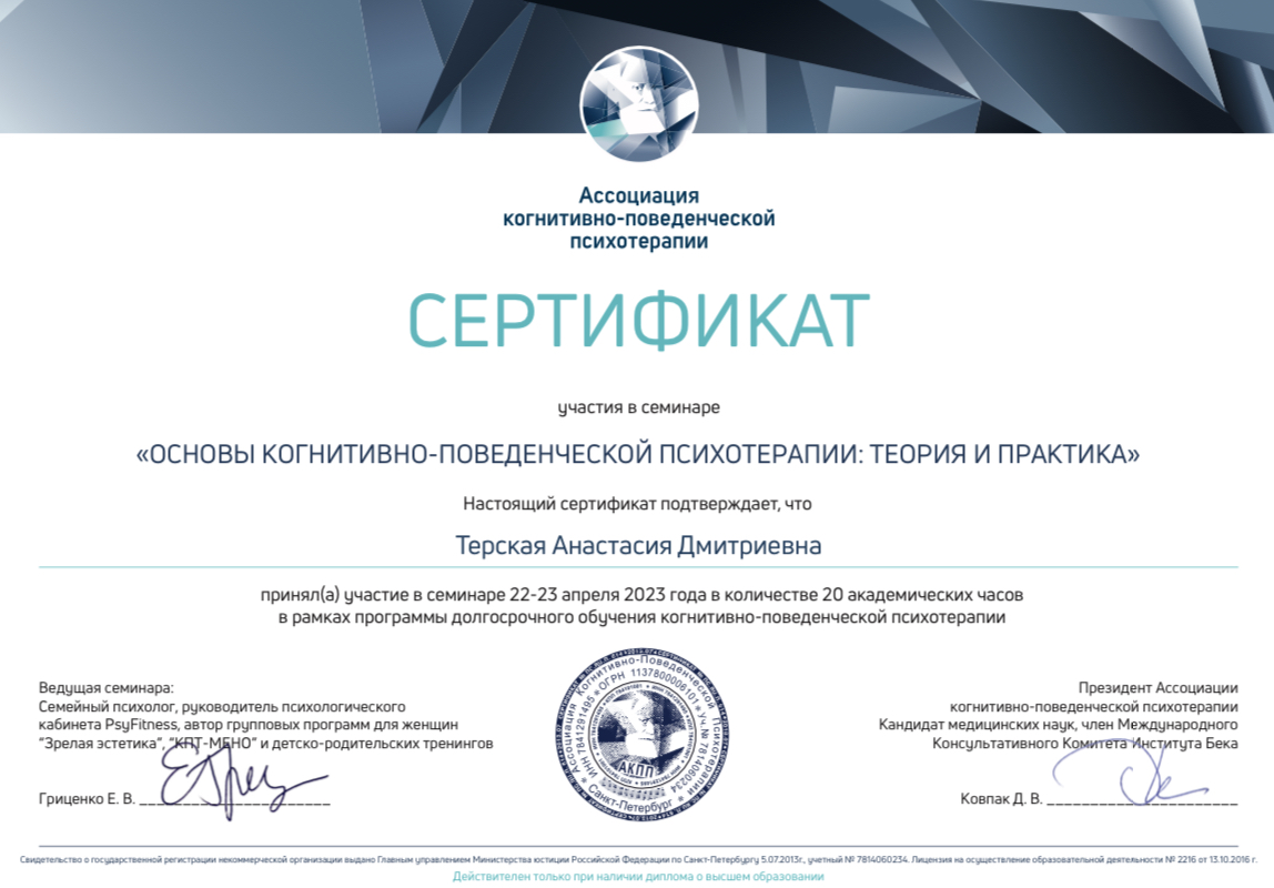✅ Работаю в подходах КПТ, схема-терапии, ACT, CFT, личностно-ориентированной рекунструктивной психотерапии (ЛОРПТ).