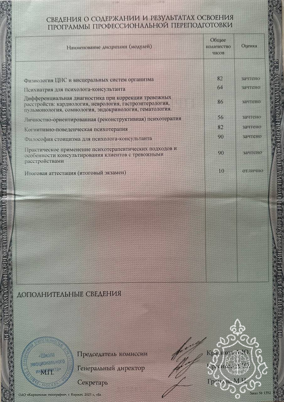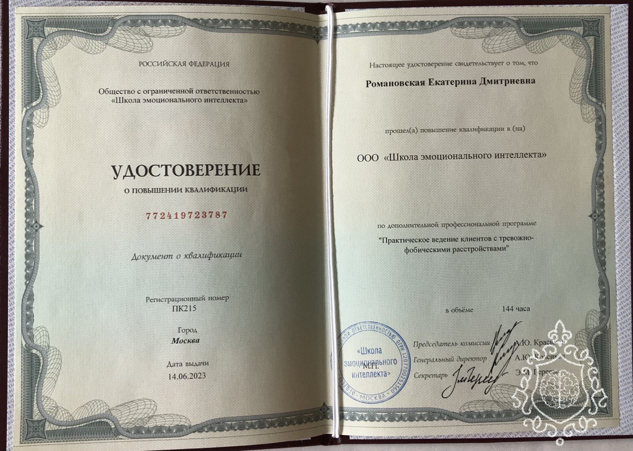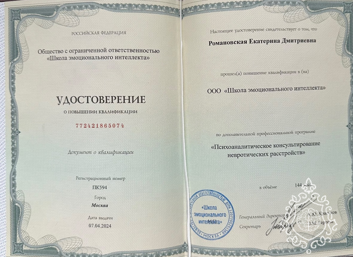 расстройств.Прошла повышение квалификации в психоанализе. В текущий