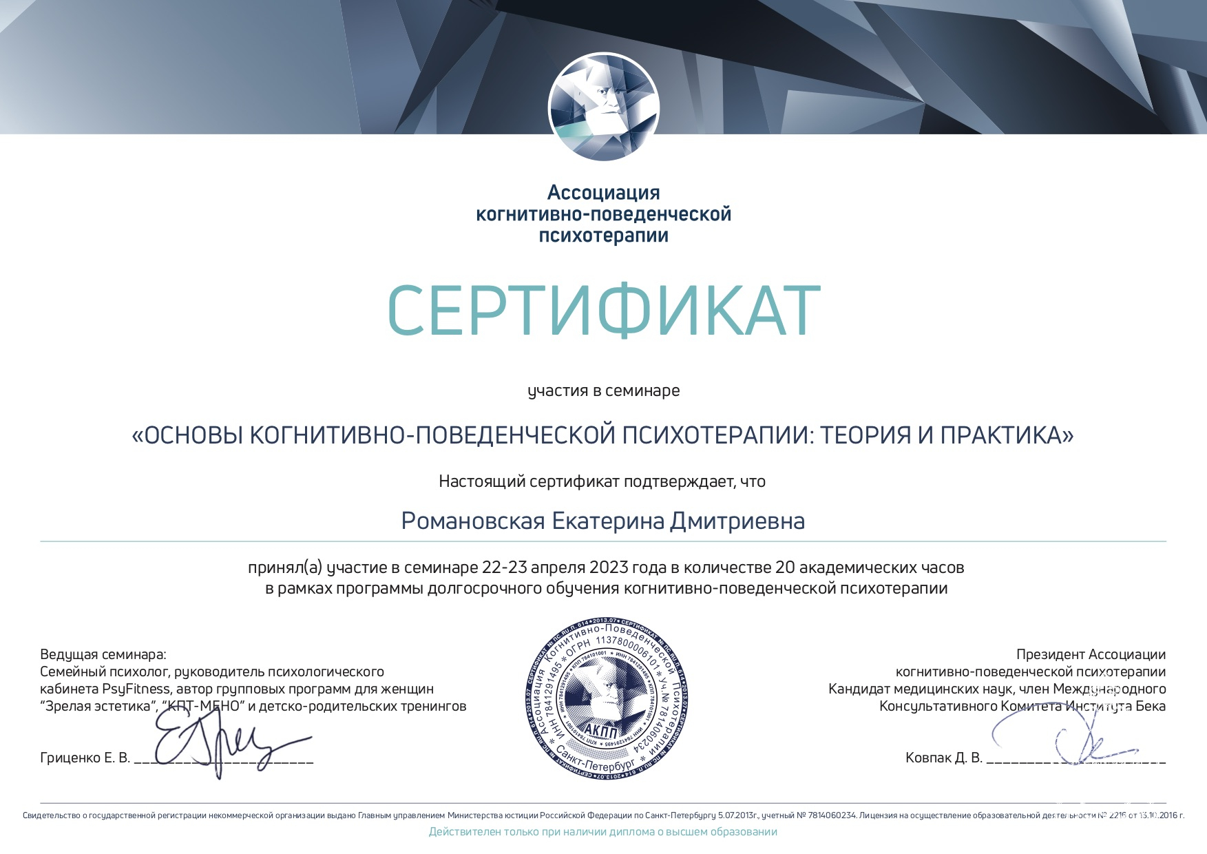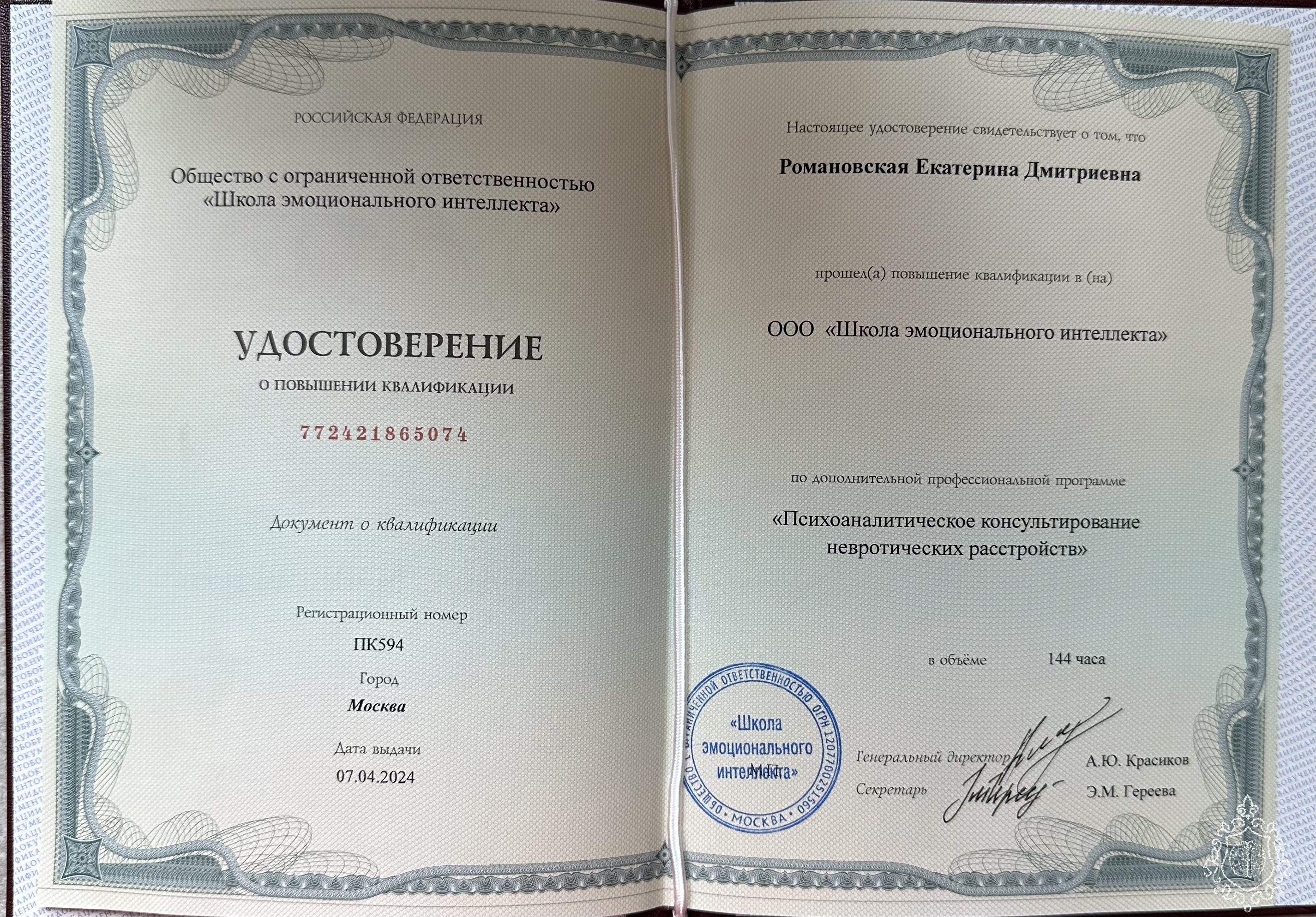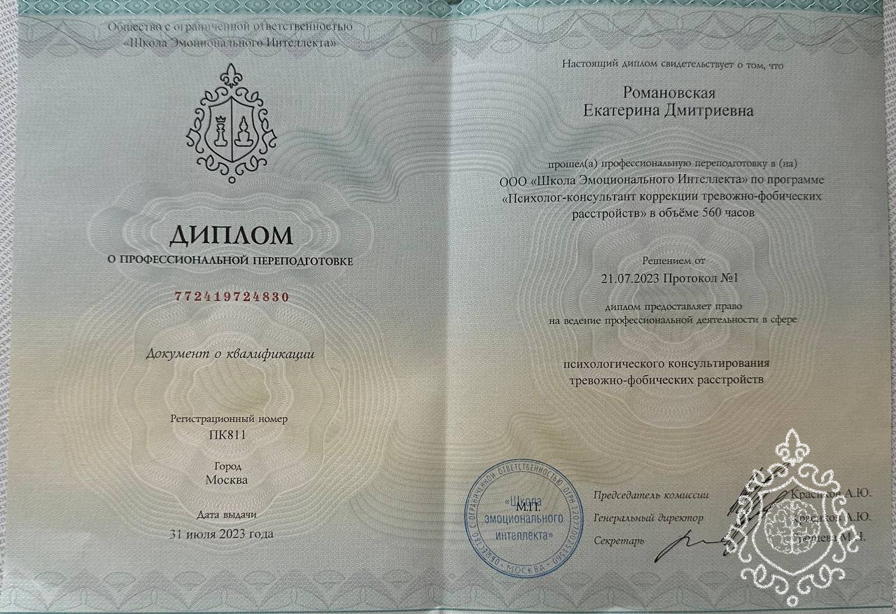 расстройств.Прошла повышение квалификации в психоанализе. В текущий