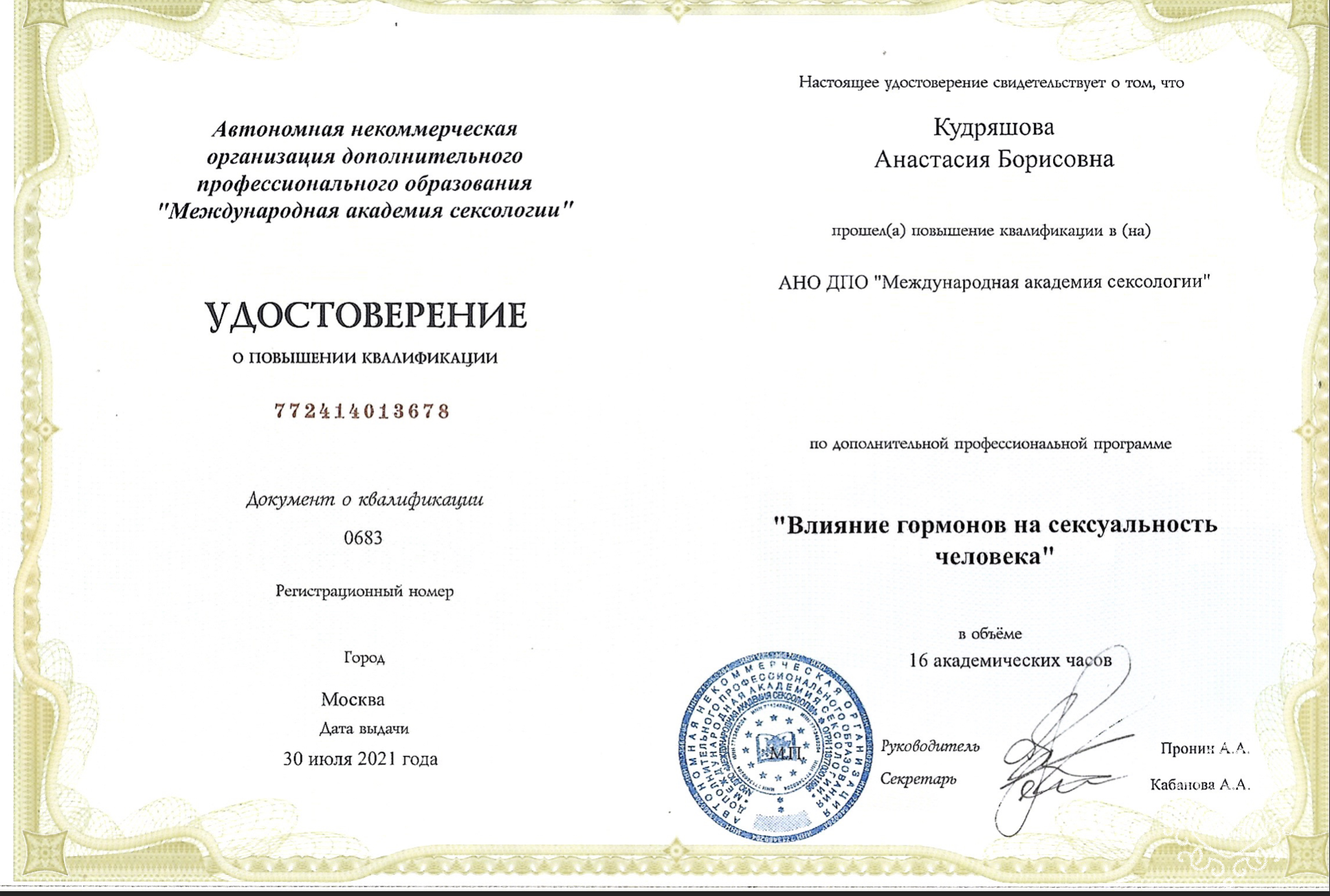 Кудряшова Анастасия Борисовна