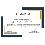 Работаю с паническими атаками, агорафобией (страх выхода из дома и страх нахождения одной(му). Работаю с тревожностью и депрессий, социофобией (страх проявления себя на публике, страх лифтов, высоты) и ОКР (навязчивые мысли и ритуалы, страх причинить вред ребенку, себе или близким родственникам, страх ножей, верёвок, окон и балконов), с синдром раздраженного кишечника (частое посещение туалета на почве тревожности или стресса), с ипохондрией (самостоятельная постановка диагноза и постоянные обследования у врачей, которые не подтверждают Ваши диагнозы), с кардиофобией (страх умереть от заболеваний сердца).