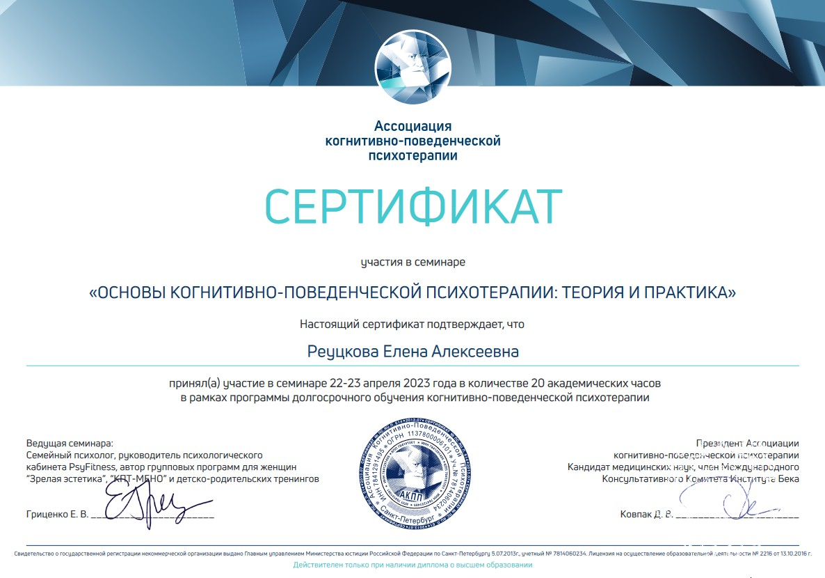 Поведенческая терапия, решает все эти вопросы и довольно успешно. Я знаю, как надо поступить человеку для решения конкретной проблемы. Панические атаки, агорафобия, навязчивые мысли и ритуалы, страх ножей и веревок, страх умереть от болезни или сердечного приступа, СРК все устраняется по рекомендованным протоколам лечения. Вся моя практика построена на доказательной медицине, которая основана на учениях В.Н. Мясищева, А.А. Ухтомского, И.П. Павлова и других ученых.