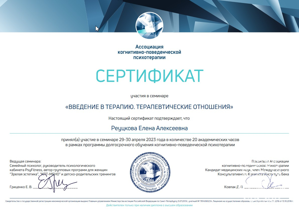 Друзья! Я специалист по тревожным состояниям. Окончила Школу Эмоционального Интеллекта Психотерапии на оценку «отлично» с грамотой.