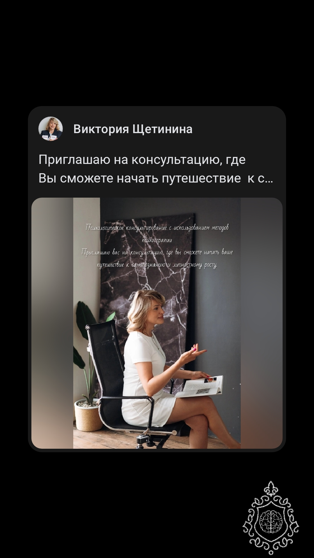 На протяжении последних многих лет ежедневно повышаю свою экспертность, регулярная личная терапия, супервизии, обучение в Школе эмоционального интеллекта, а также в других образовательных организациях.