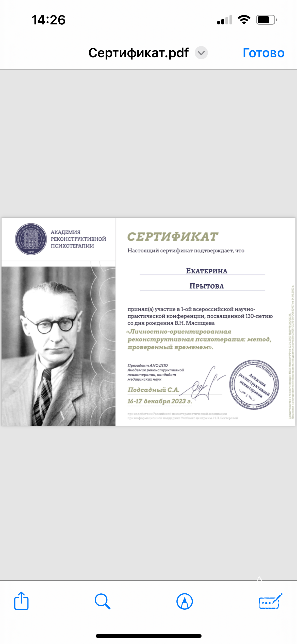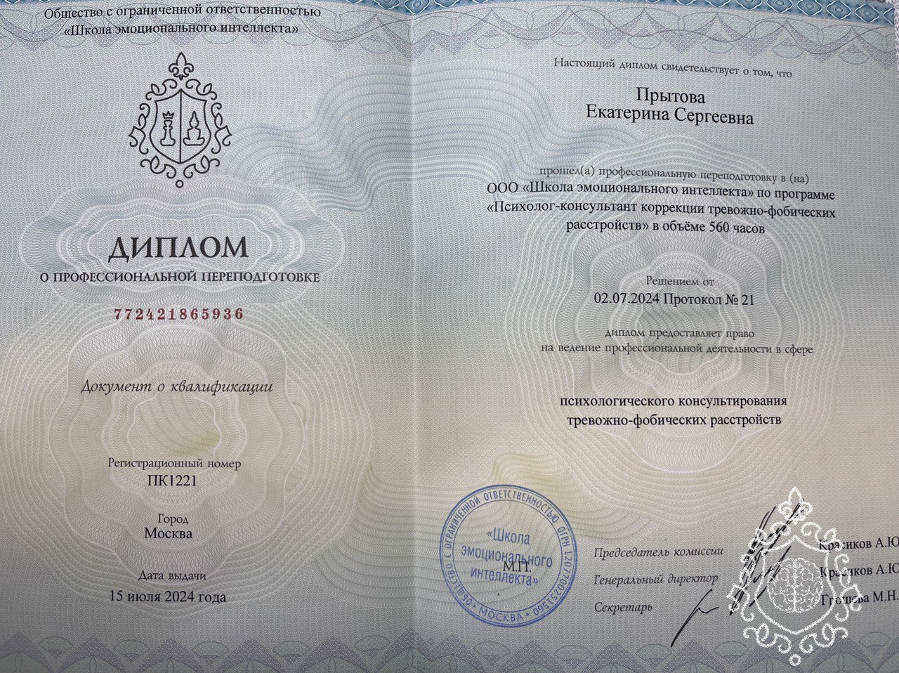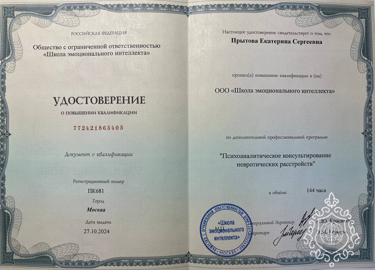 В своей работе я опираюсь не только на психологию, но и на знания в области медицины. Имею сертификат младшей медицинской сестры.
