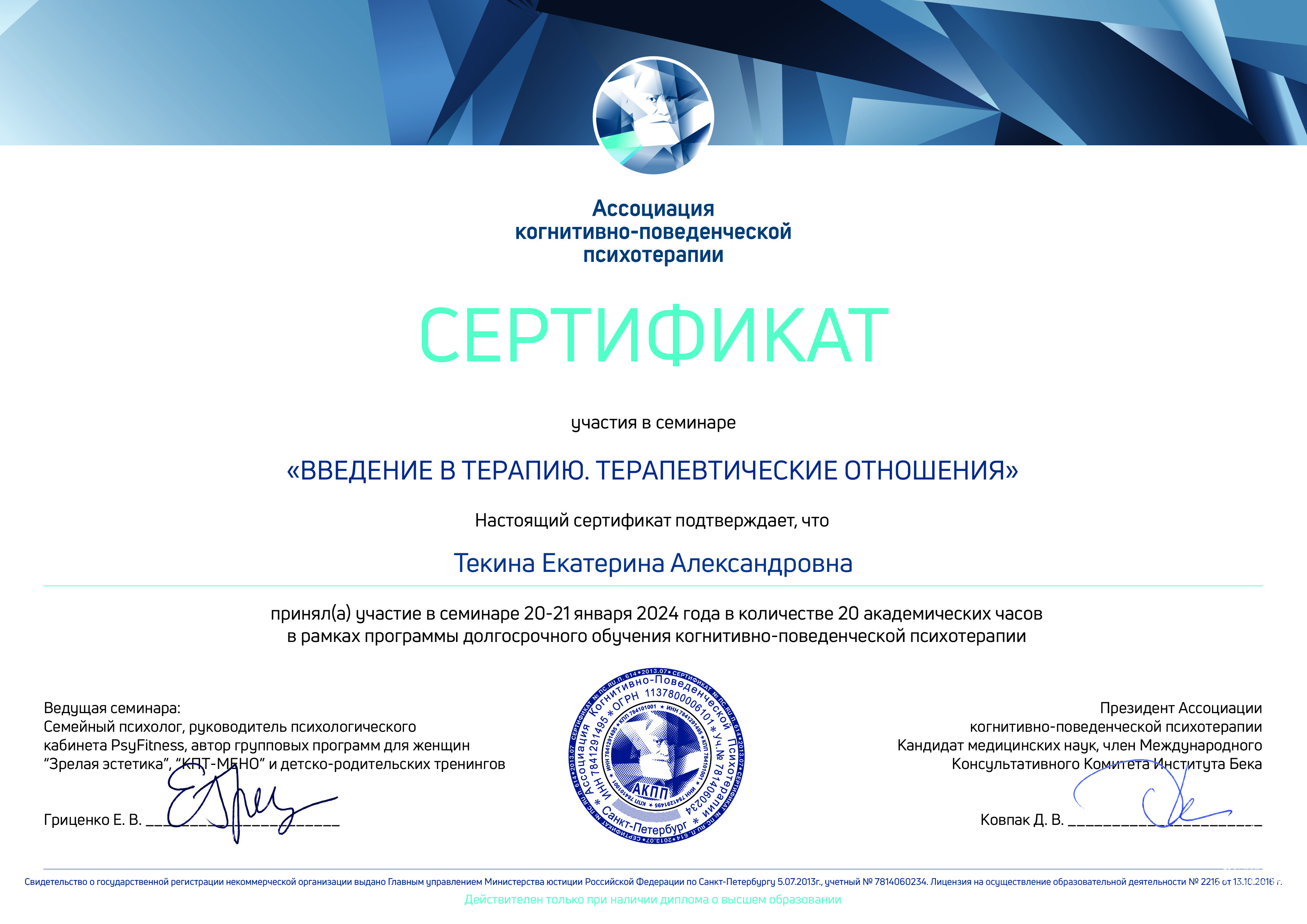 Курс повышения квалификации: "Психотерапия при расстройствах пограничного спектра" (ноябрь 2025 - февраль 2026 г.)