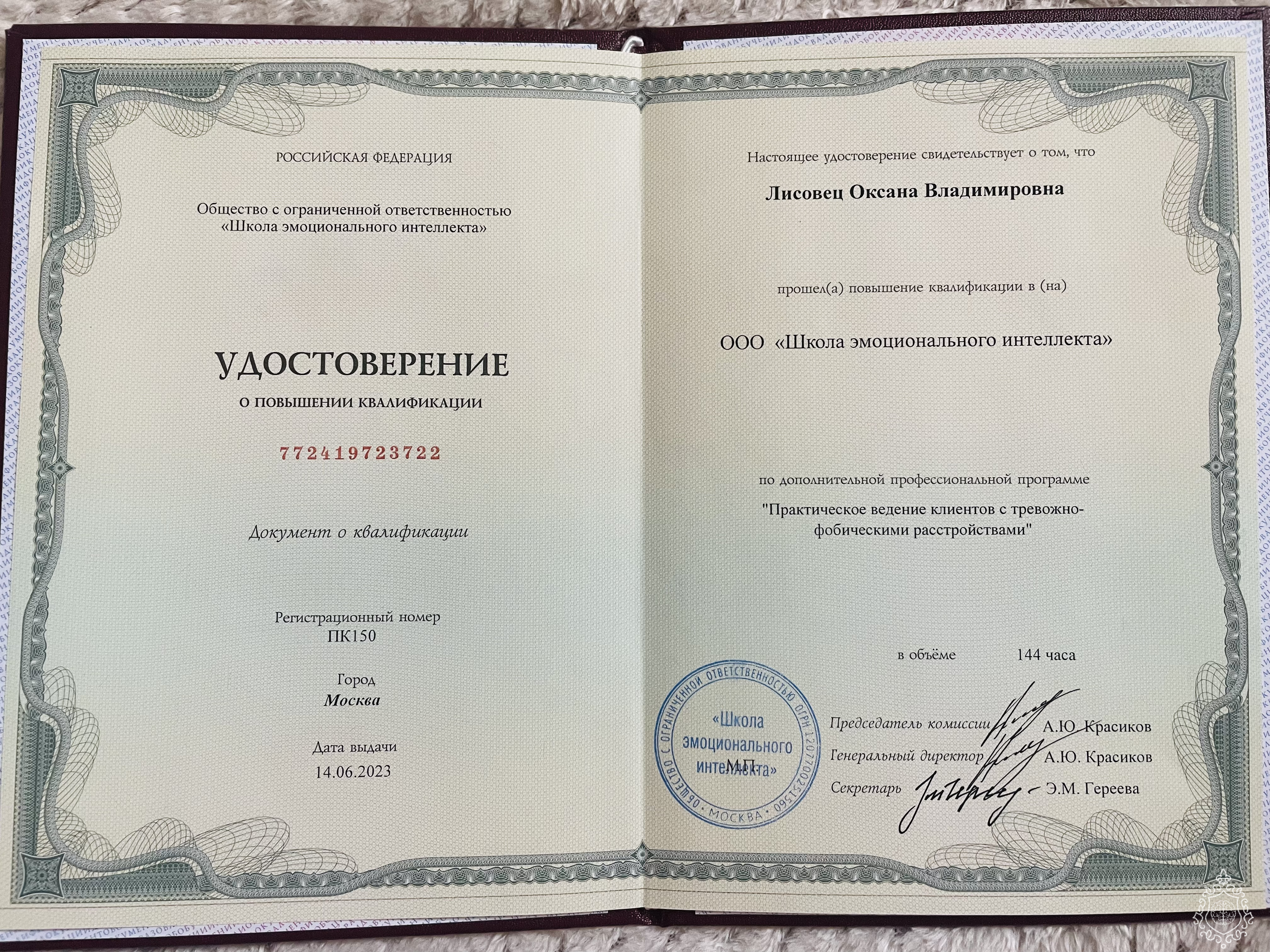 Член Ассоциации КПТ. Работаю в методе Личностно-ориентированная