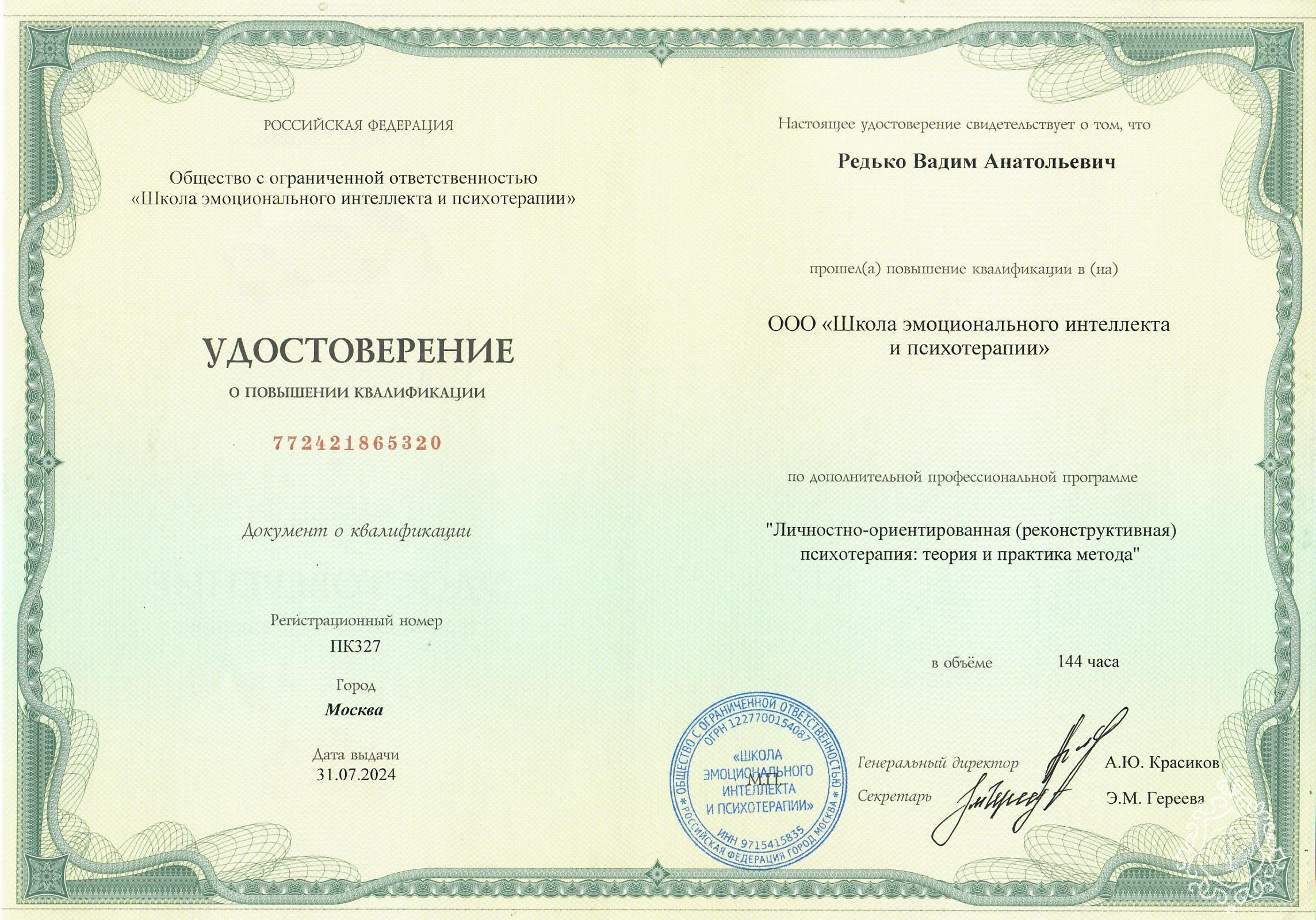Для меня важны конфиденциальность, взаимоуважение, внимание к чувствам, переживаниям и ценностям клиента. Заинтересован в результативности своей работы.