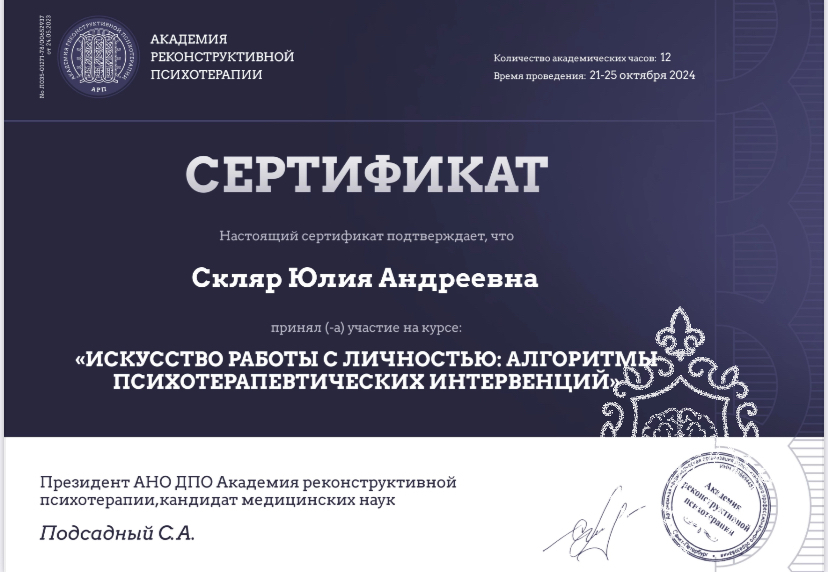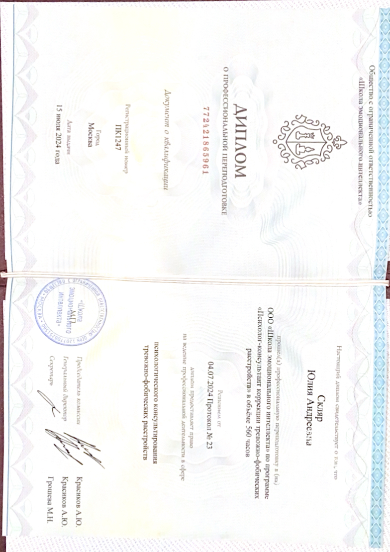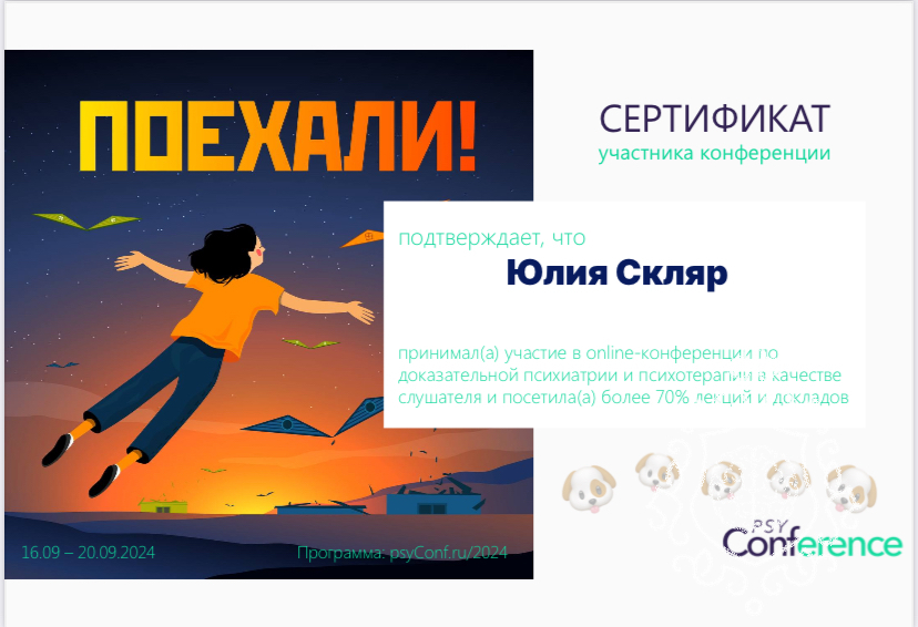 Если вам отзовется мой опыт и моя личность, и вы стремитесь справиться со своей проблемой с помощью специалиста, то рада буду помочь и пройти именно ваш путь вместе.