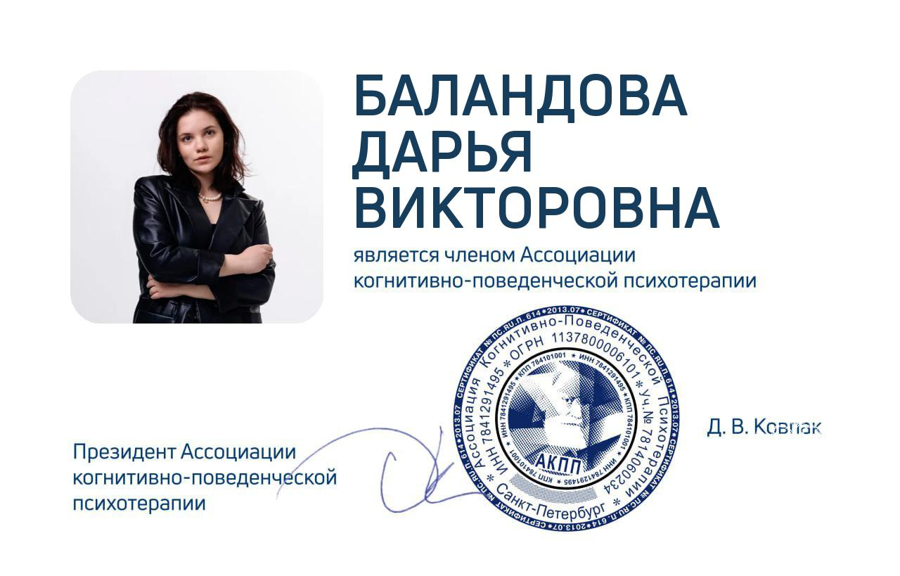 — Международный институт развития когнитивно-поведенческой терапии, г. Санкт-Петербург — ACT-терапия (2025 г.)