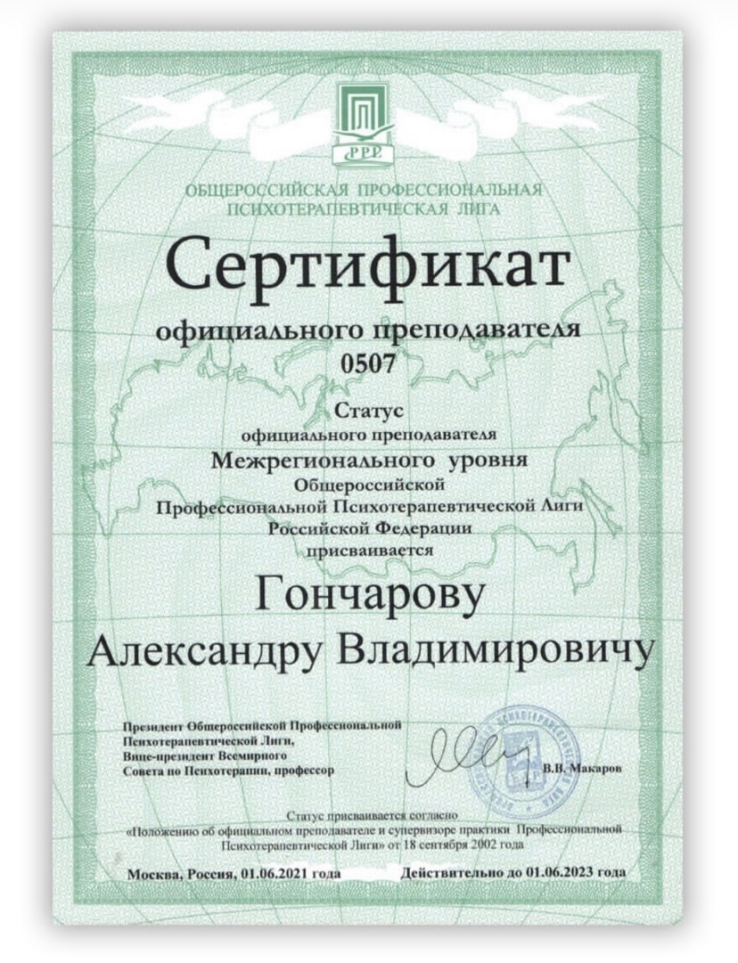 Член и Преподаватель Общероссийской Профессиональной Психотерапевтической Лиги