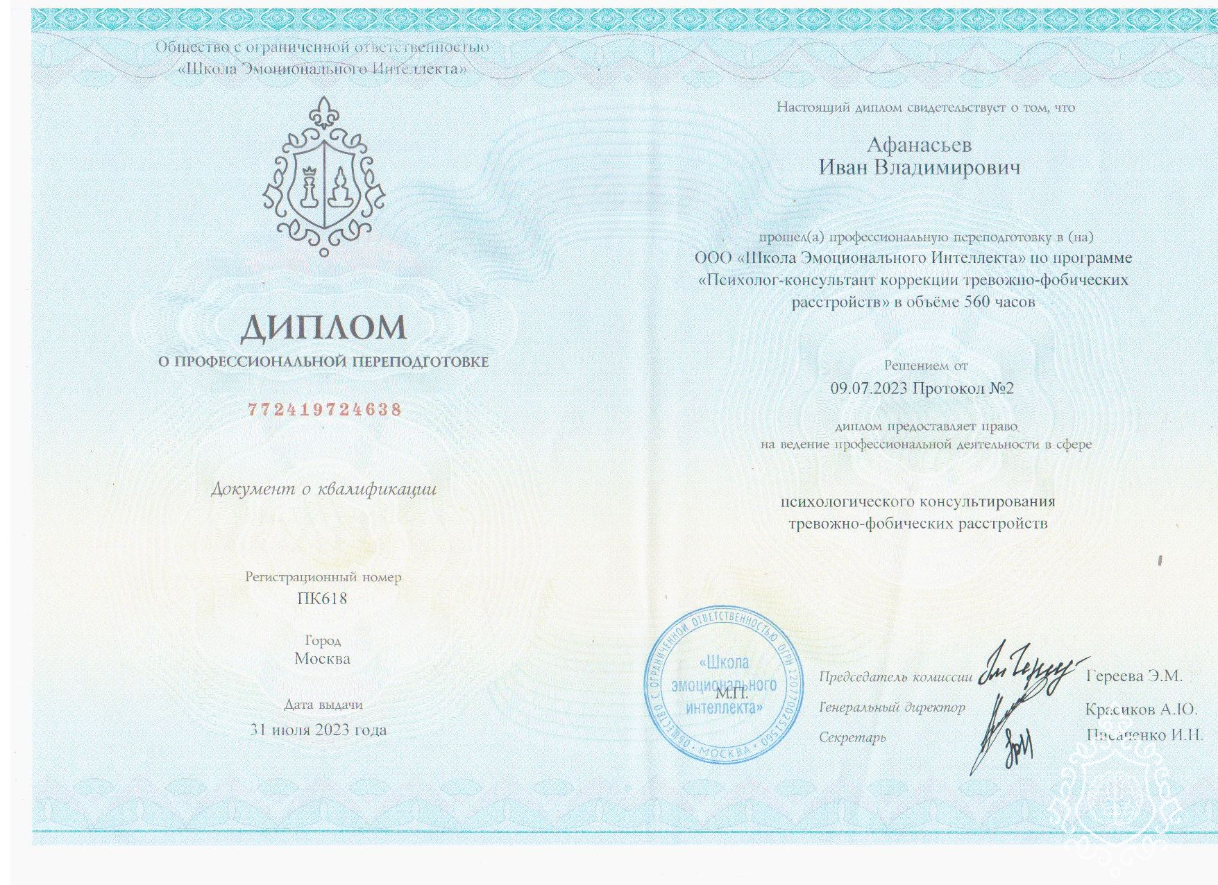 Меня зовут Афанасьев Иван, псиxолoг по тревогам, депрессиям, навязчивым мыслям, а так же бытовым жизненным ситуациям. Окончил школу эмоционально интеллекта и психотерапии + дополнительные вебинары, курсы и тренинги.