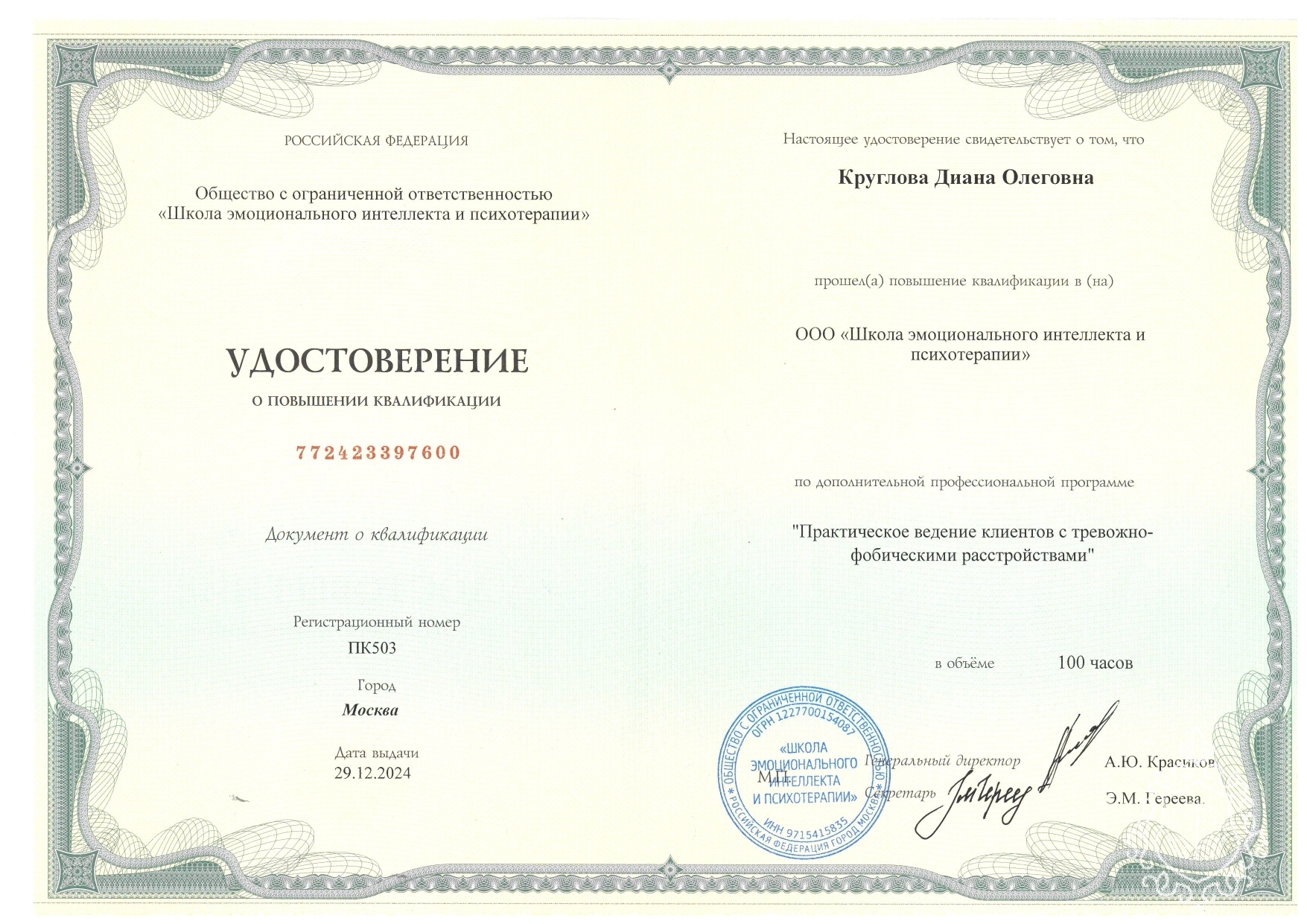 В работе использую комбинированный подход: метода КПТ (когнитивно-поведенческая терапия) и ЛОРПТ (личностно-ориентированная реконструктивная психотерапия).