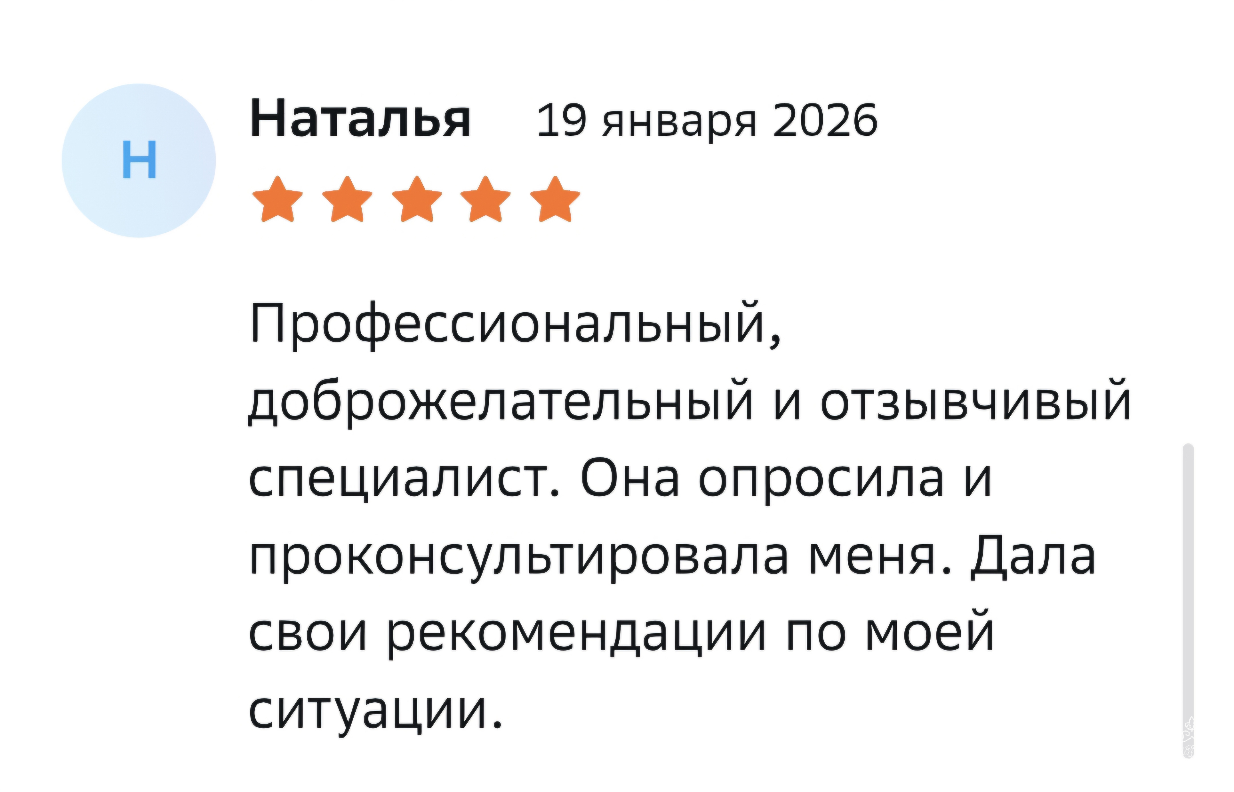 Клинический психолог, эксперт в сфере созависимости, любовной зависимости и абьюзивных отношений, а также практикующий специалист по семейному консультированию. Помогаю парам и семьям выстраивать здоровую коммуникацию. Специалист по тревожно-фобическим расстройствам, член ассоциации экспертов эмоционального интеллекта. В свой работе использую только доказательные методы психотерапии.