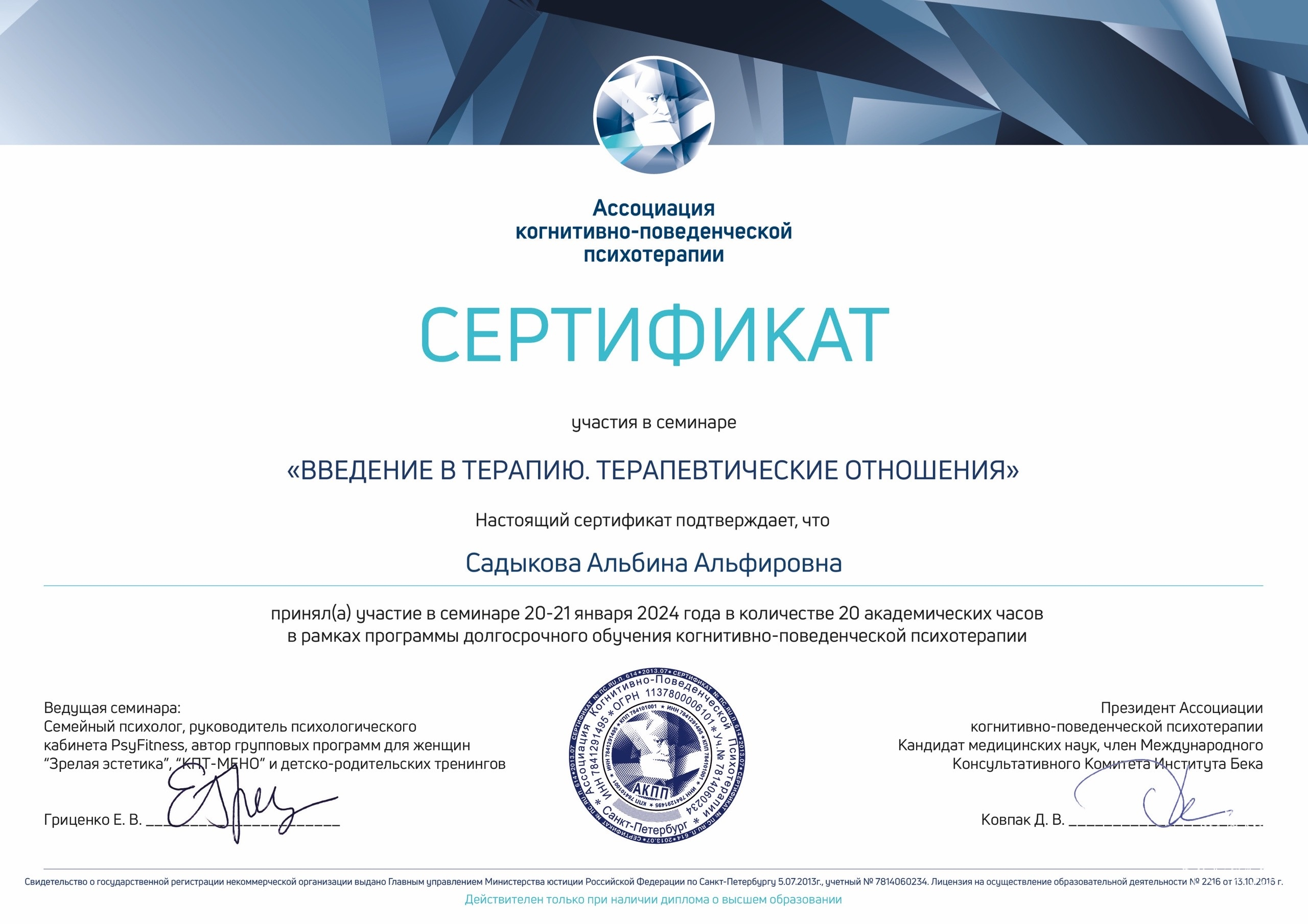 Привет, меня зовут Альбина Садыкова. Помогаю справиться с тревогой, стрессом, паническими атаками, выгоранием, сепарироваться от родителей, взрастить опору на себя.