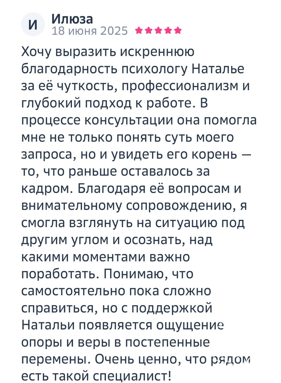 Работаю с теми, кто устал жить на автопилоте тревоги, хочет вернуть себе радость, уверенность и гармонию.