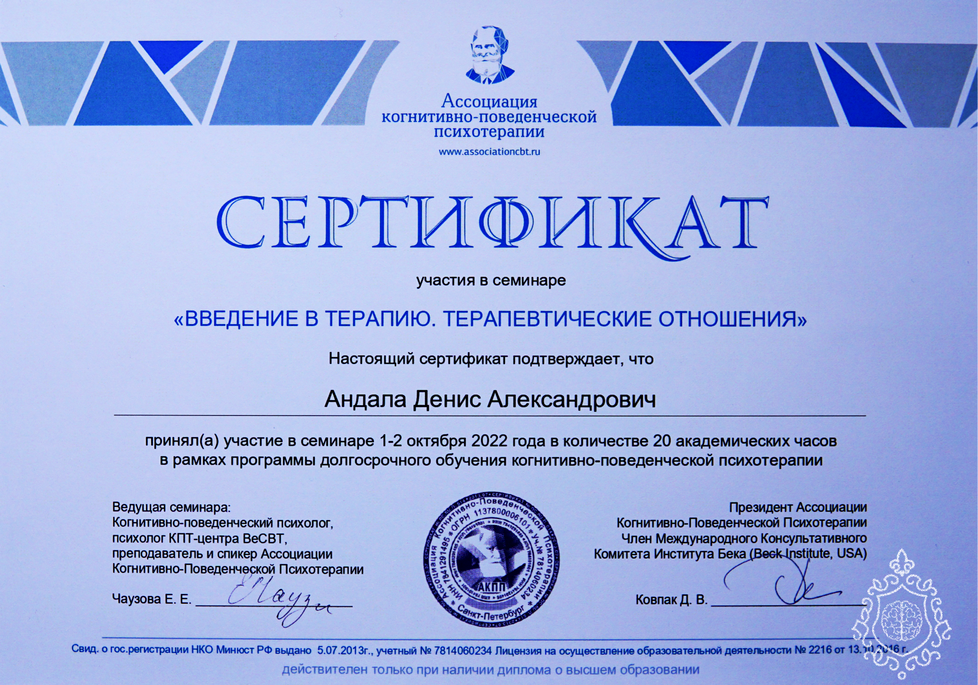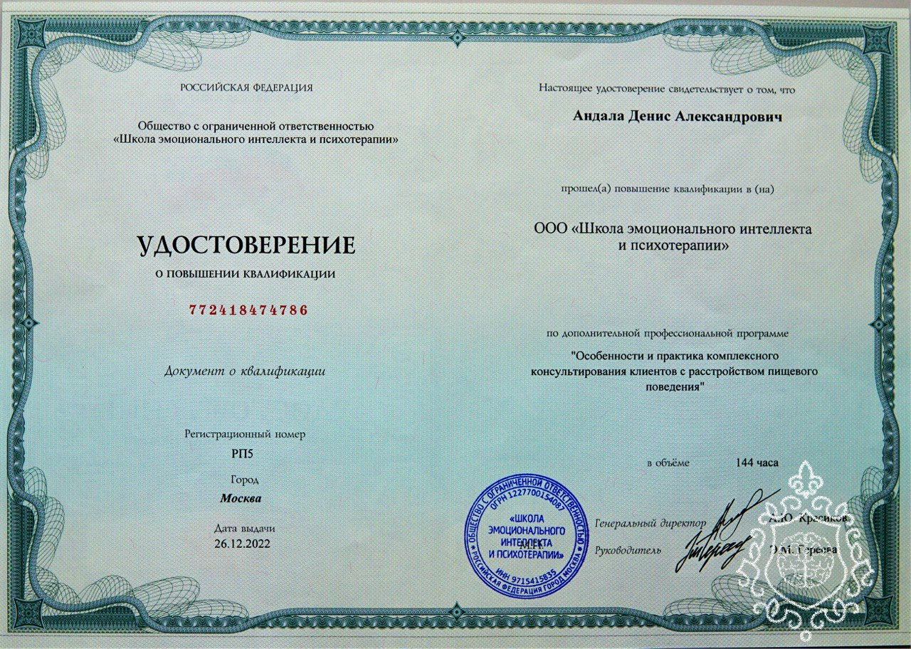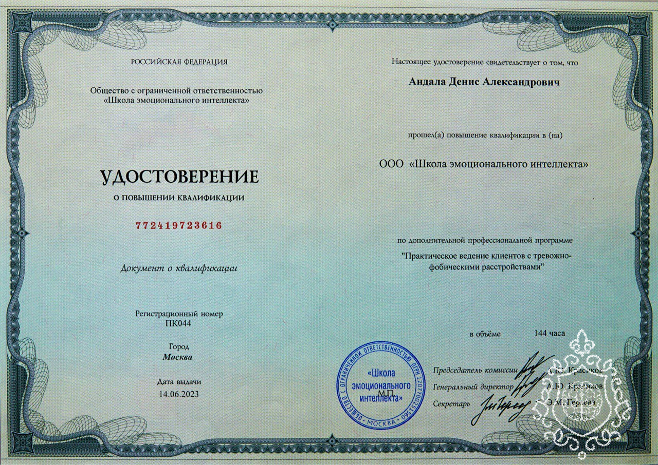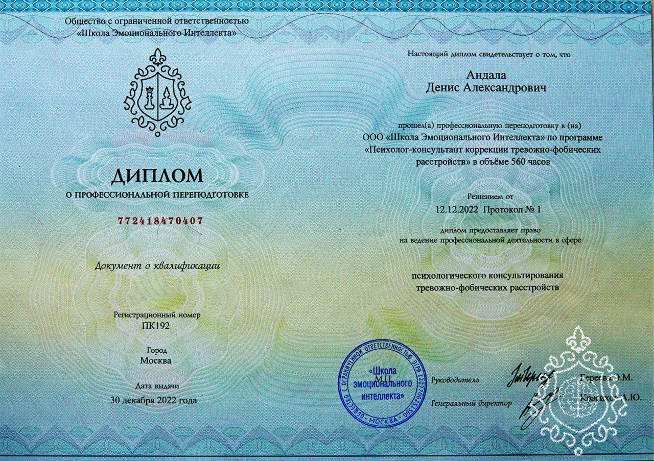 Специалист по тревожно-фобическим расстройствам и расстройствам пищевого поведения