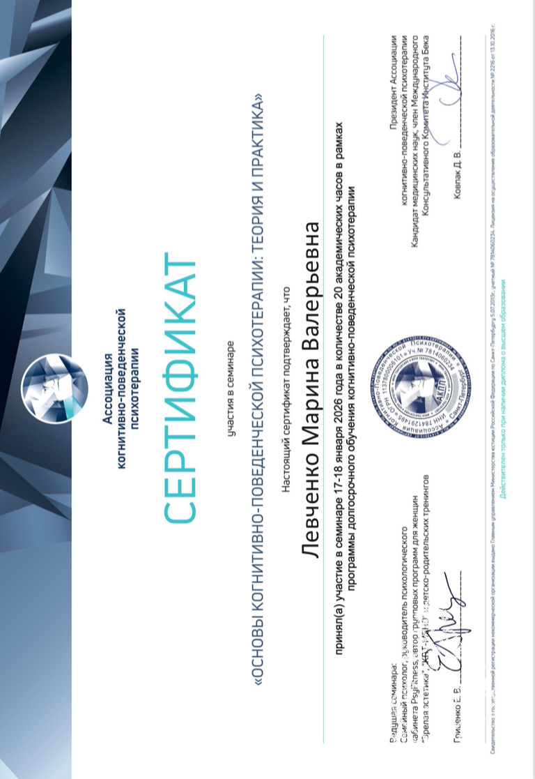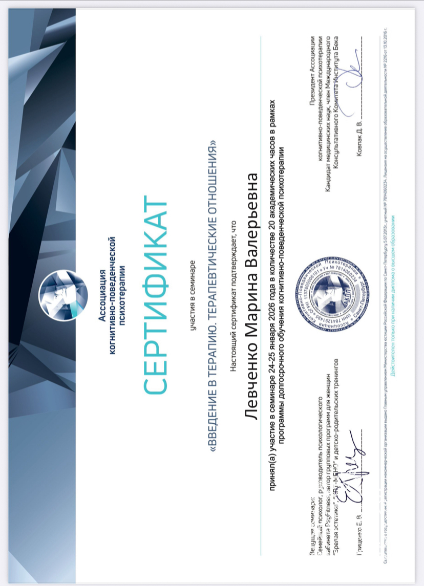 Очень творческий и эмпатичный человек, с пониманием отношусь ко всякому роду фобиям, страхам. Моя доброжелательность и открытость создаёт теплую атмосферу взаимопонимания и поддержки.